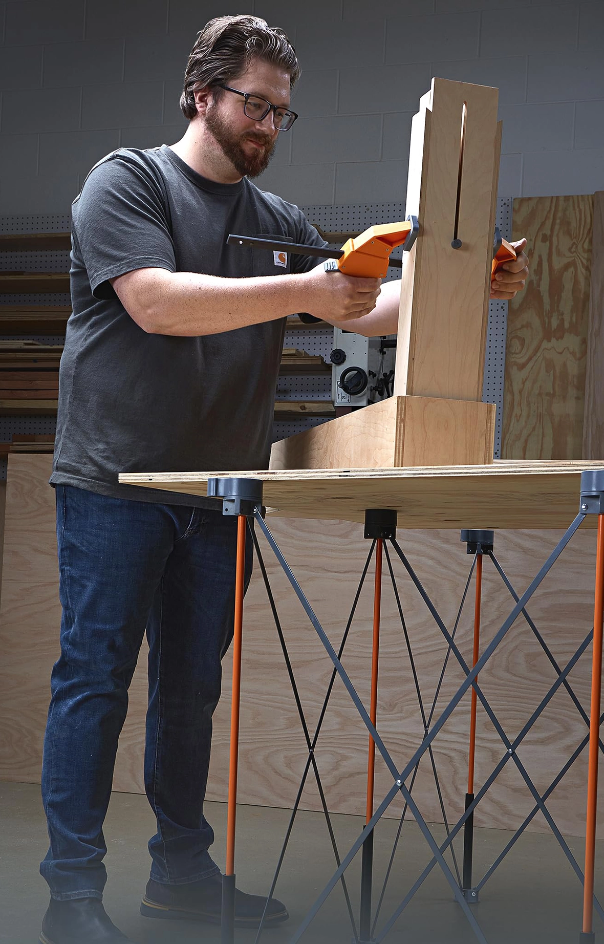 A temporary work surface can be quickly built to adapt to various operating scenarios such as sawing, assembly, spraying, etc., with one machine for multiple uses