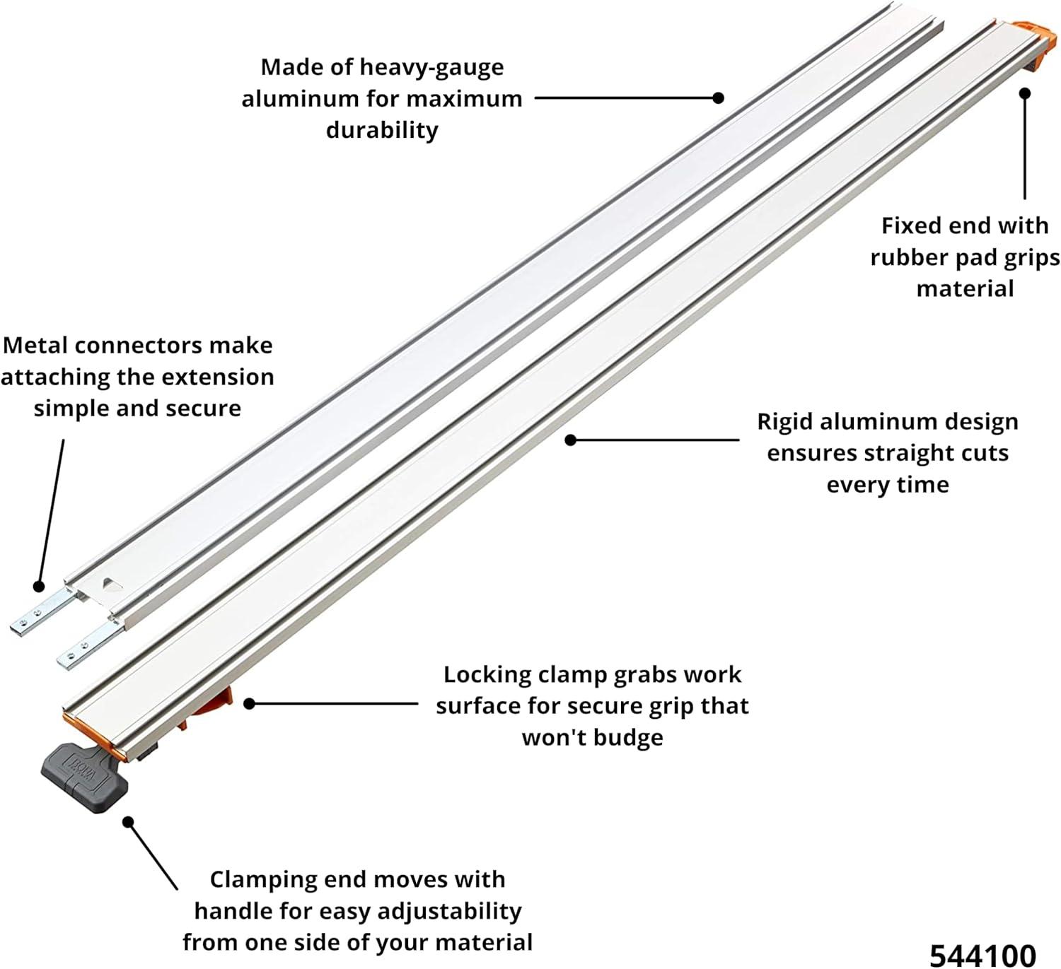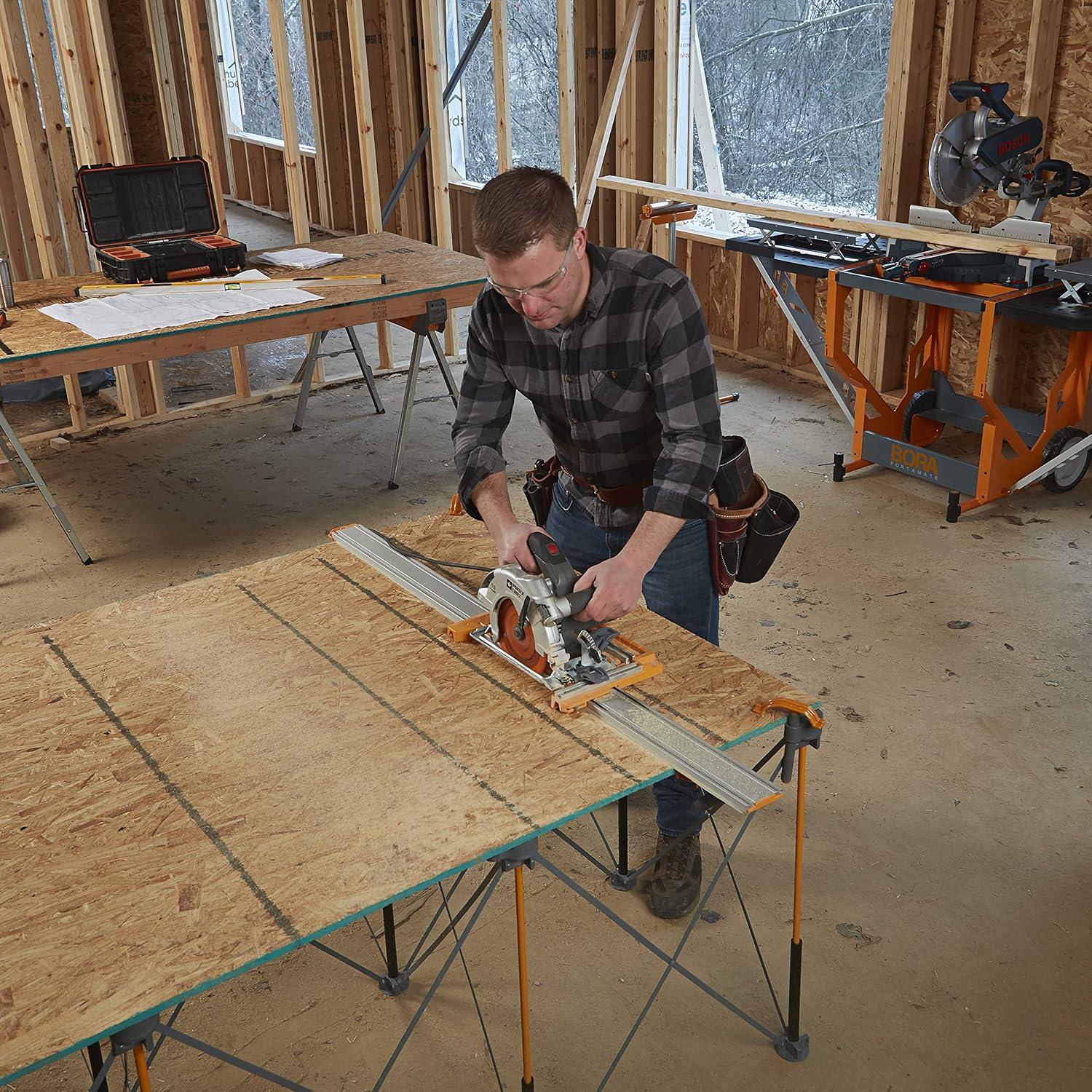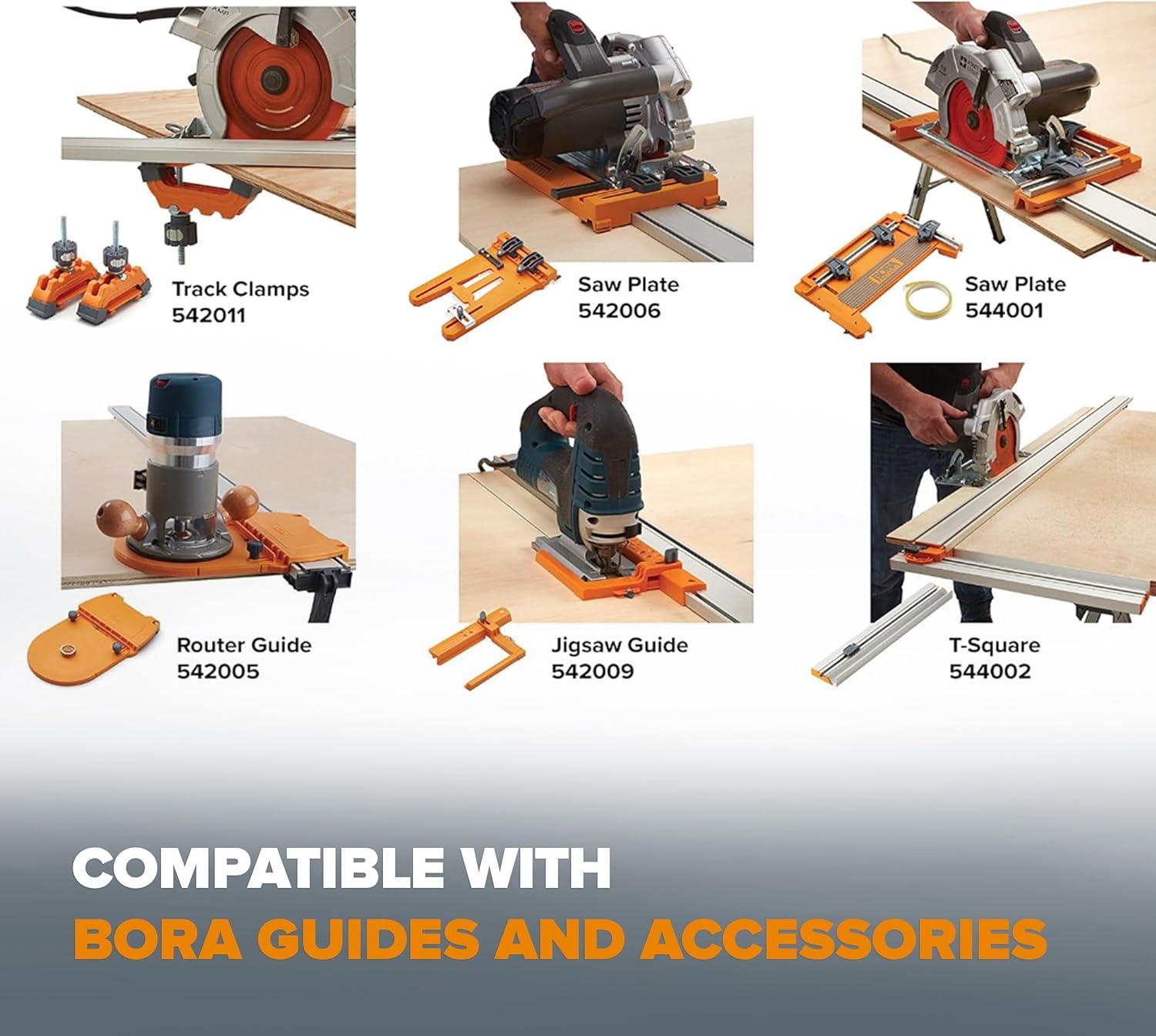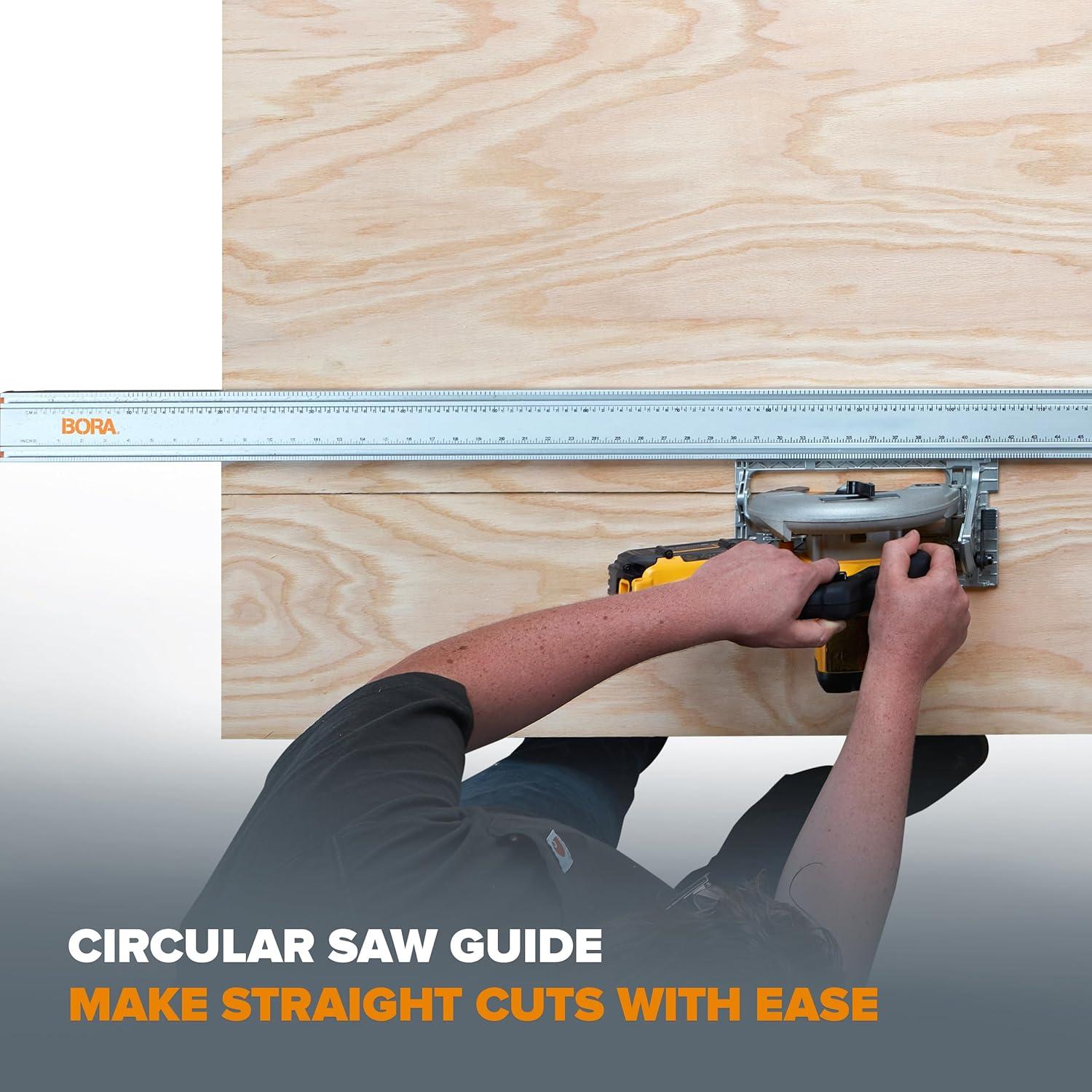 The Bora NGX Skill Saw Guide 544100 is a versatile and precision-engineered tool designed to enhance your woodworking projects. This circular saw track offers unparalleled accuracy and straight cuts. Featuring two integrated T tracks for accessories, instantly add a T Track to your bench or worksurface, by simply clamping it on as needed. This rip cut circular saw guide ensures a seamless guide for your saw, maintaining a straight edge throughout the cut. This provides a comprehensive solution for users, offering a reliable and adjustable system to achieve precise cuts. Thanks to its innovative Quick Lock Lever, you can clamp this guia para sierra circular securely in place with a single motion, ensuring a tight grip that won't budge. The ergonomic sliding clamp handle makes one-sided adjustments quick and easy, reducing the need for repositioning. Compatible with circular saws, routers, jigsaws, and other portable power tools, the Bora Straight Edge ensures clean, accurate cuts every time. Perfect for woodworking, remodeling, or any project requiring precise cuts, this Bora Saw Guide will streamline your workflow and boost your productivity.