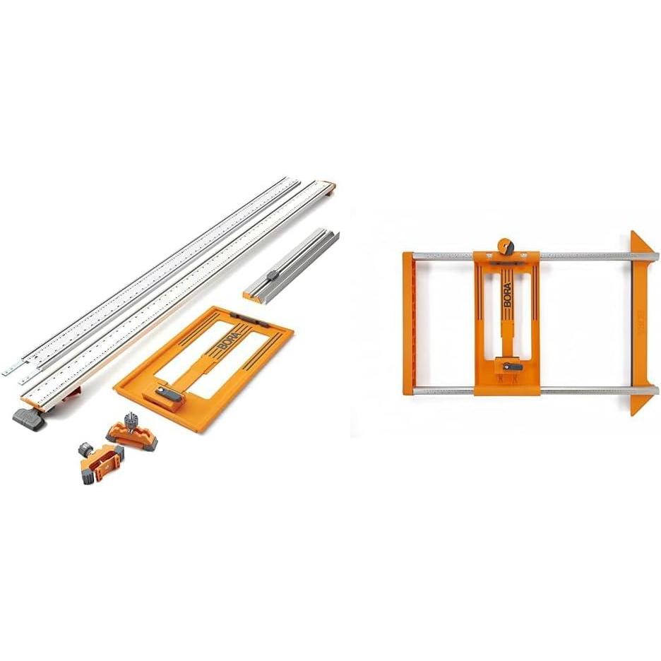 The BORA NGX Deluxe Clamp Edge System Set and Twin Rail Rip Guide form the ultimate straight cutting bundle for circular saws. The Deluxe Clamp Edge Set includes a 50-inch clamp edge, 50-inch extension, NGX saw plate, T-square attachment, and track clamps. This 100-inch system enables you to make straight, clean cuts in sheet goods and dimensional lumber using your circular saw. The innovative clamp attaches directly to the handle for easy one-handed operation. Simply hook the edge across your workpiece, align it with your cut line, and clamp down. The NGX Twin Rail Rip Guide complements the system by providing a durable 24-inch rip capacity guide rail for circular saws. Its twin aluminum rails prevent racking and misalignment while the oversized handle gives you maximum control. The tool-free clamping mechanism allows quick mounting and fits most left and right-handed circular saws for easy portable use. Together, the Deluxe Clamp System and Twin Rail Rip Guide form a versatile straight cutting system for breaking down sheet goods. Effortlessly attach your saw to either accessory to make precision cuts with a circular saw rather than relying solely on a table saw.