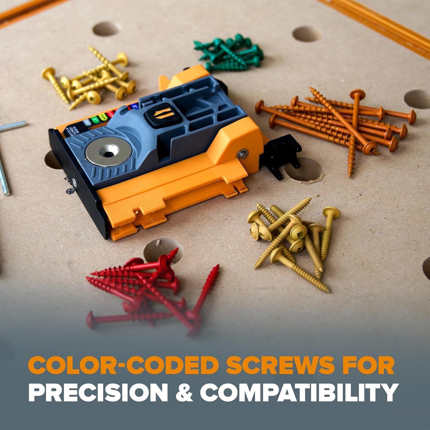 Color-Coat Tech – Our jig also shows you what size screw is needed for the depth of your pocket hole in both measurement and color matching to use with our 350 piece color coated pocket hole screws. Ensures perfect screw fit and offers corrosion resistance. No more guessing needed.
