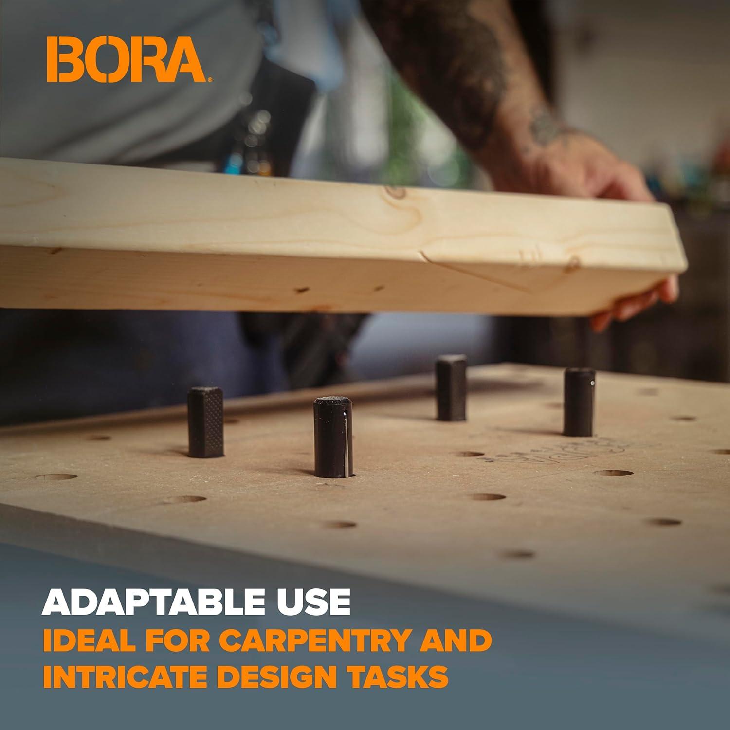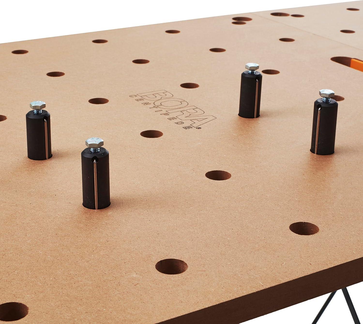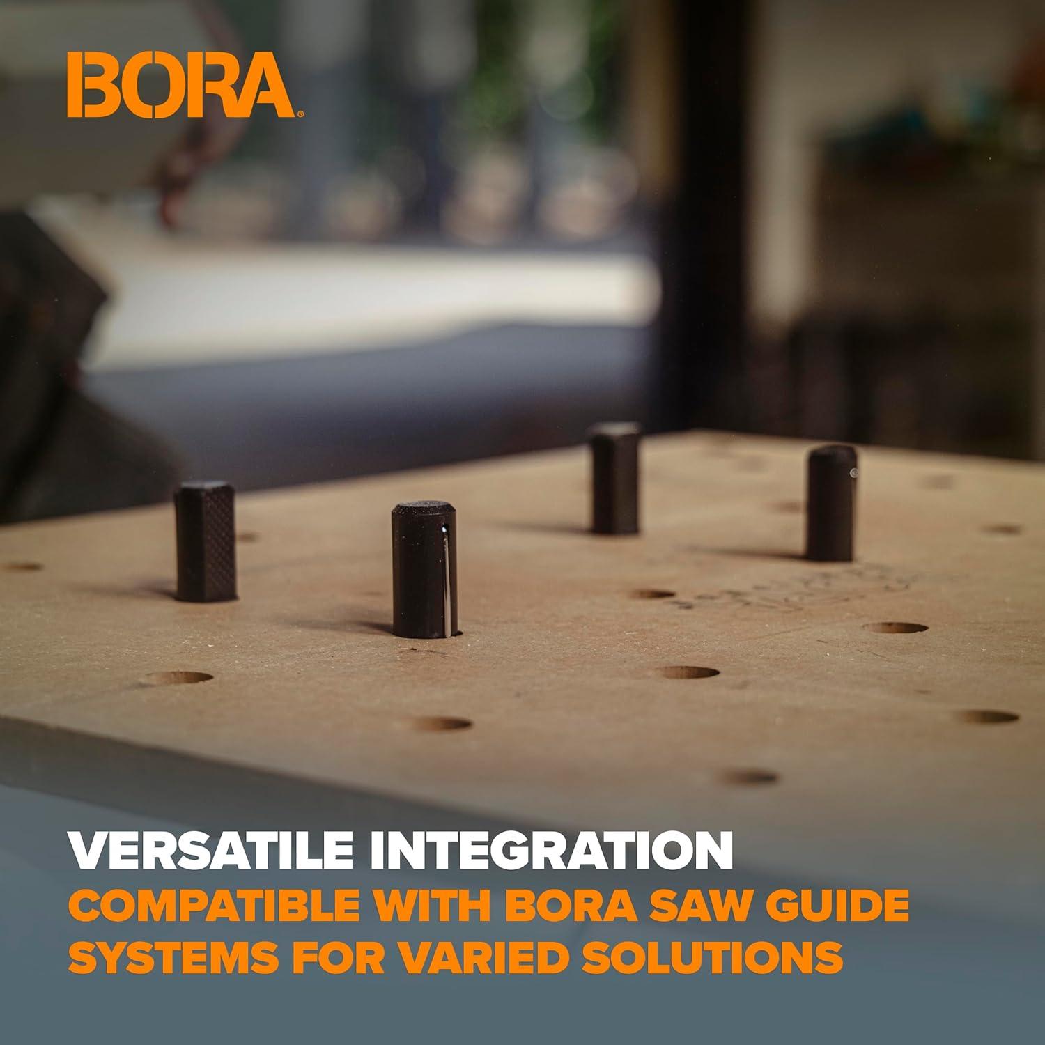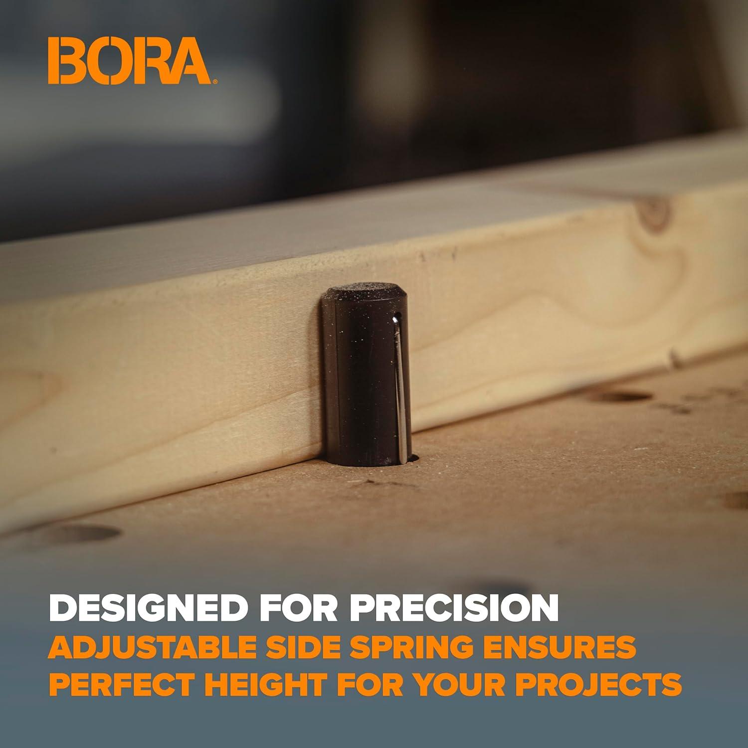 The BORA Centipede 4 Pc Bench Dog T-Slot Connector is essential for any professional tradesperson seeking to enhance their workbench setup with precision. Designed specifically for 3/4-inch dog holes in the CK22T Centipede Tabletop, this orange connector offers unique flexibility with its adjustable side spring feature, ensuring perfect height adjustments for your projects. The textured surface holds your projects securely, minimizing unwanted movement. Compatibility with BORA saw guide systems enables easy integration with a variety of tools, providing numerous solutions for your tasks. Whether you're working on carpentry projects or intricate designs, this T-slot connector offers the adaptability and security you need to succeed in your trade.