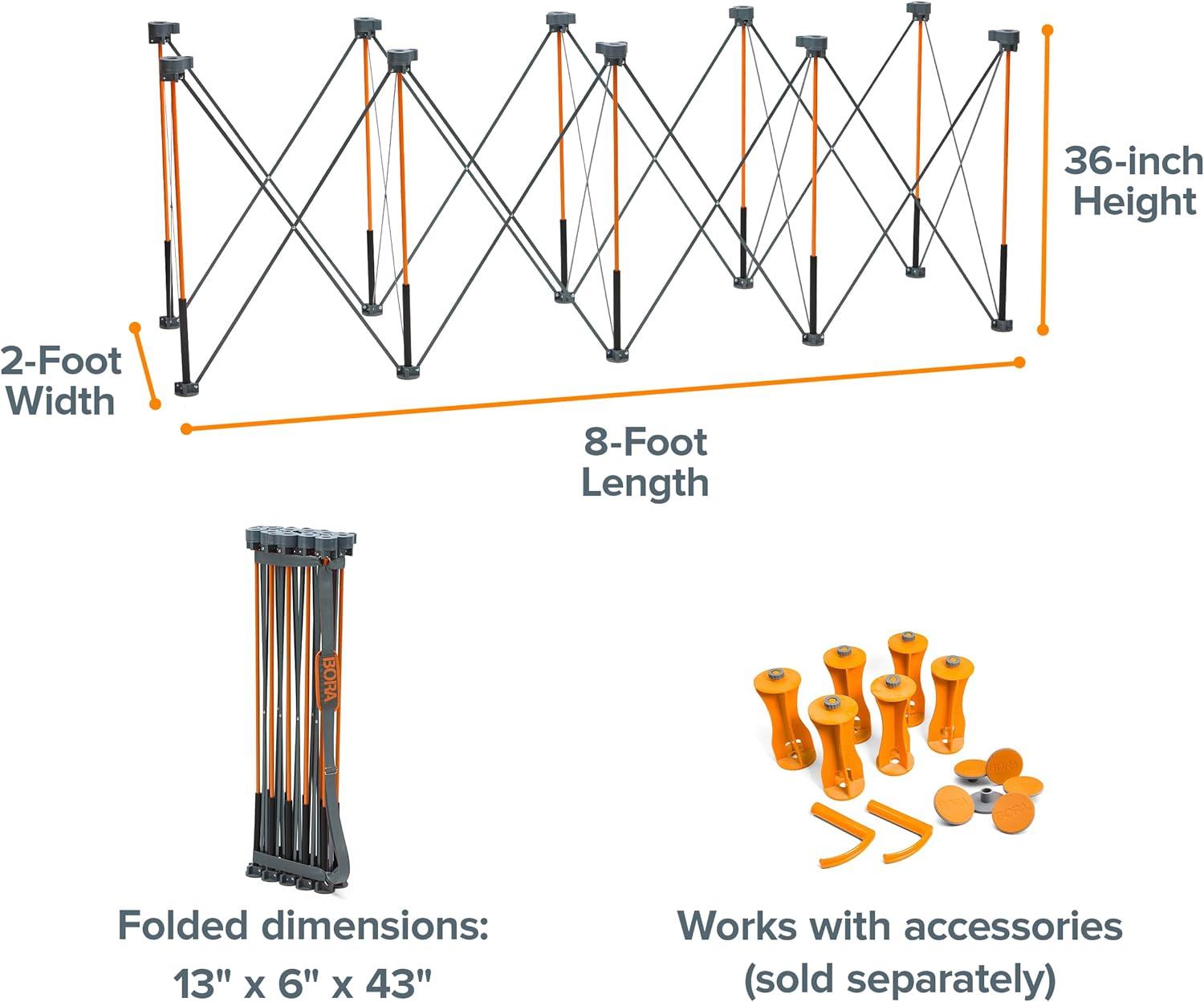 BORA Centipede CT6 36 inch Tall Portable Folding Workstand with Carry Strap, Collapsible Workbench, Construction table, Support, Sawhorse, 2Ft X 4Ft, 36 inch work height, 2,500lb weight capacity(2ft x 8ft x 36in)