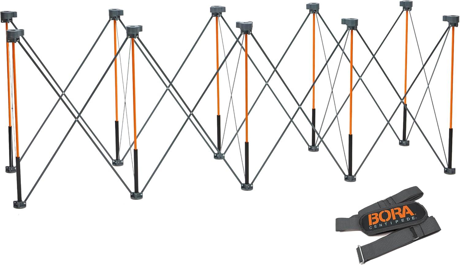 Discover the ultimate job site solution with the BORA Centipede Portable Work Stand. This versatile woodworking table is designed to meet the needs of both professional contractors and DIY enthusiasts, providing a stable and expansive surface for any project. Built to impress, the Centipede boasts a heavy-duty construction capable of supporting up to 2,500 pounds, making it perfect for even the most demanding tasks. Functioning like a folding sawhorse, it is a big help in creating an instant work area in garages, basements, or outdoors for short-term projects or when space is limited. This portable collapsible workbench can be set up within seconds to create a sturdy, portable table foundation that can withstand up to 2,500 lbs of load. Featuring non-slip P-Tops, this workbench for garage securely holds materials without causing damage, while the durable steel struts ensure long-lasting reliability. Whether you're cutting, sanding, or assembling, this folding work stand provides the ideal foundation for all your projects. BORA Centipede folds down to a compact size, making storage and transport a breeze. This foldable workbench has built-in carry straps so you can bring this easy-setup tool stand anywhere, whether it is outdoors, in the garage, in the basement, or indoors. The BORA Centipede Portable Work Stand an indispensable tool for any workshop.