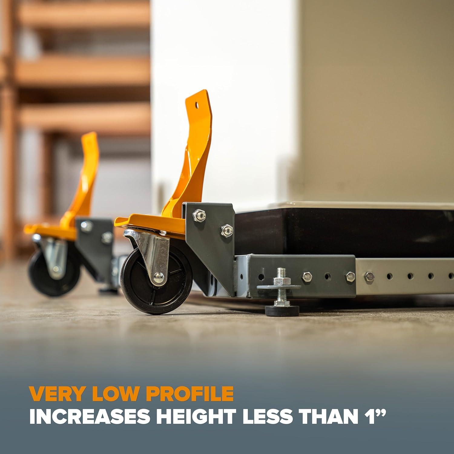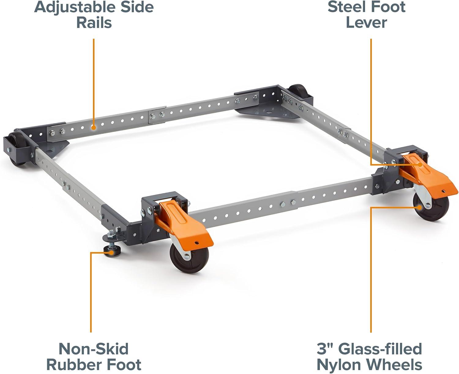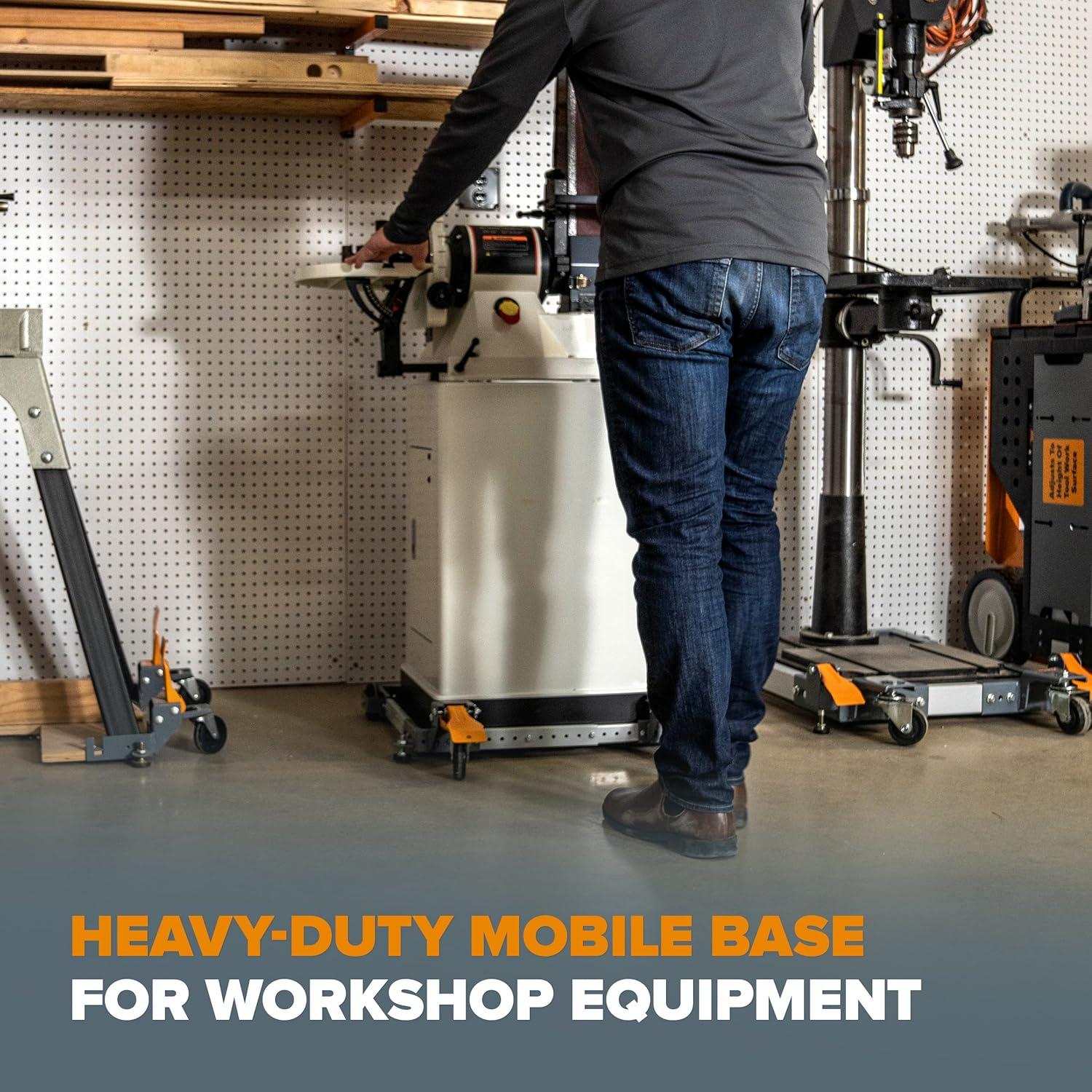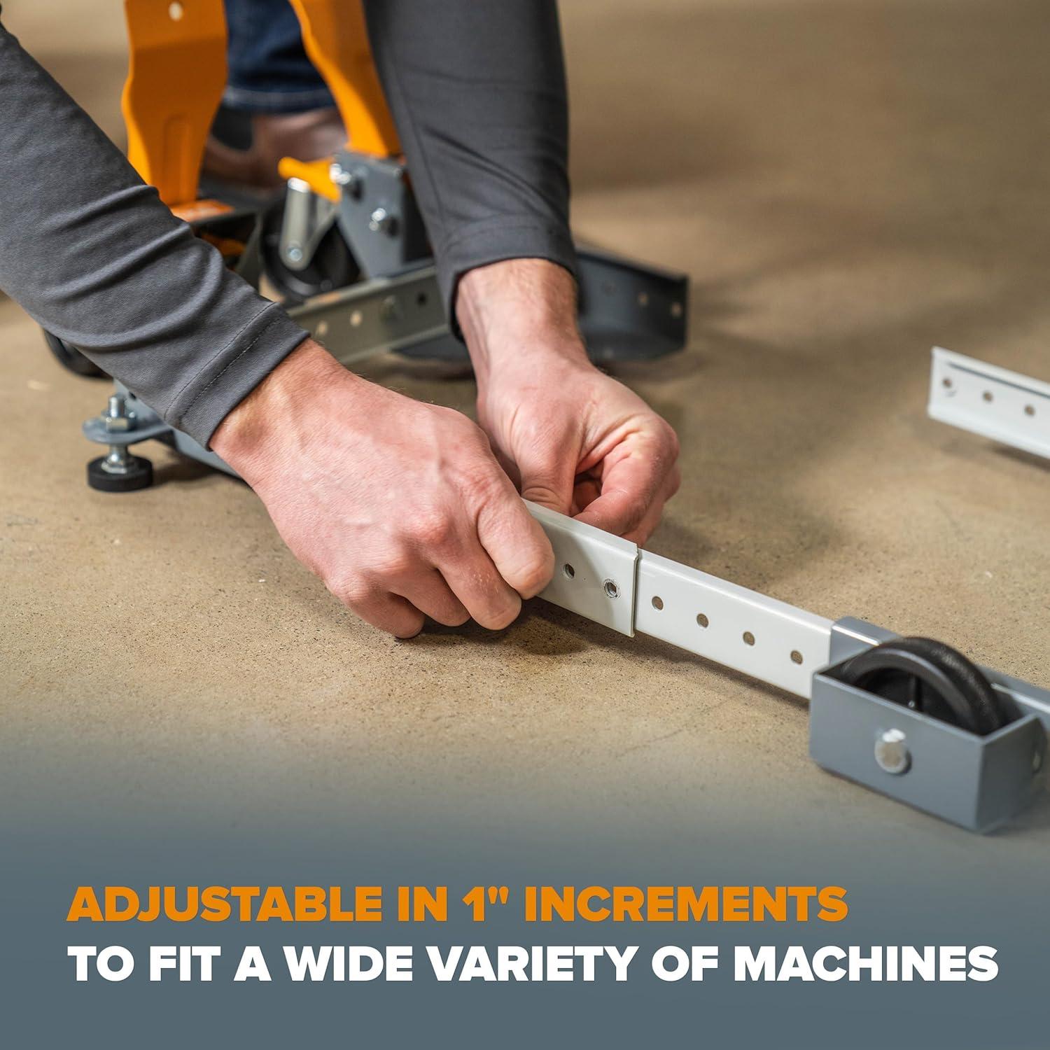 The BORA Universal Mobile Base is your ultimate solution for effortlessly moving heavy equipment in your workspace. Designed to provide maximum flexibility and convenience, this portable base adjusts in 1-inch increments, fitting a wide variety of machines from table saws to other shop equipment. With adjustable dimensions ranging from 12×12 inches to 26×26 inches square and up to 16×36 inches in rectangle, this mobile base accommodates most machines, making it an essential tool for workshops and garages. Built for easy mobility, the base features 3-inch hard rubber wheels that glide smoothly across shop floors, supporting up to 400 pounds. The caster wheels ensure that your machines are easy to reposition, allowing for a clean, organized workspace. The low-profile design increases your machine height by less than an inch, providing stability while maintaining an easy transition from stationary to mobile with the locking steel foot levers. This tool stand with wheels is not only built for strength but also designed for convenience. The non-skid feet keep your equipment securely parked, ensuring it stays exactly where you need it. Whether you're looking to move your tool stand or other shop equipment, the BORA Universal Mobile Base makes it simple to position, move, and secure your tools, ensuring greater efficiency and organization in your workspace.