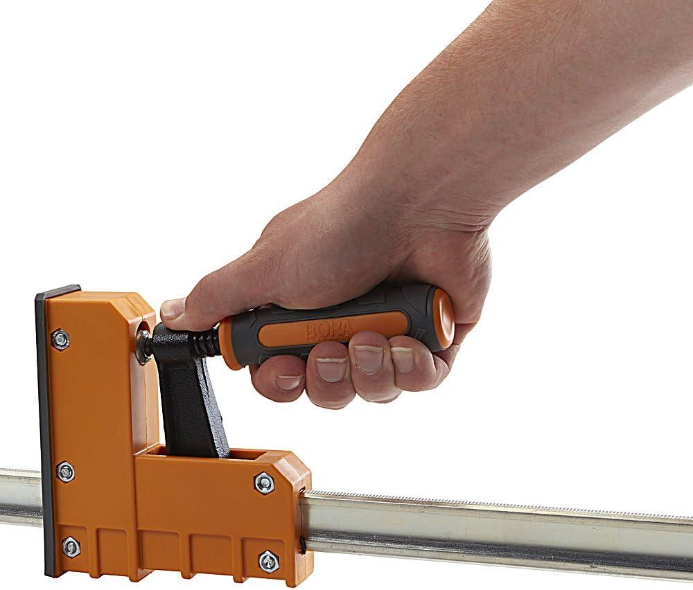 Bora Knows How Important It Is To Rigidly Clamp Down Your Case Goods And Other Woodworking Projects. Rock-Solid Stability Means More Precise Work. Our Parallel Jaw Clamp Is The Woodworking Clamp That Both Enthusiasts And Professionals Reach For. With The Perfect Amount Of Pressure 1, 100 Lbs (500 Kg), A 3 ½” (89 Mm) Throat With A Padded Jaw, And Sizes That Range From 12” To 50”, It Becomes An Extremely Versatile Tool For Your Clamping Needs. Add In The Little Extras That Make All Bora Products Stand Out – In This Case, A Passive Lock Bottom Jaw, And Large, Easy-Grip Handle. Get One (Or Several) For Your Shop Today.
