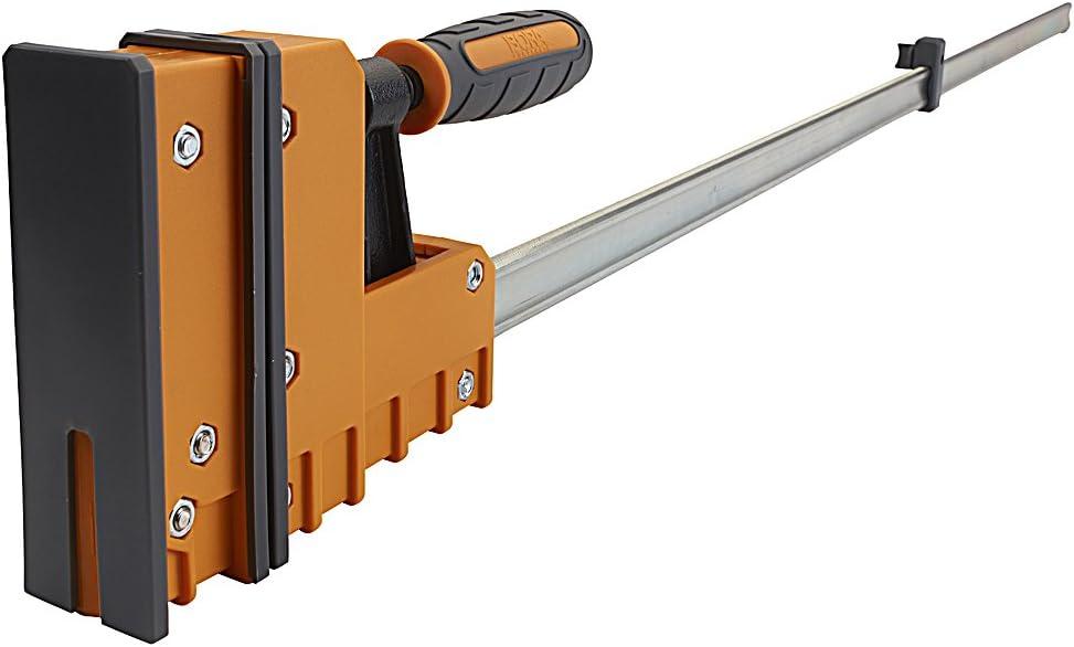 The top-selling Bora Tool 24-Inch Parallel Clamp delivers exceptional clamping pressure and performance with an easy-to-use design. The 3.5-inch padded jaws slide up and down with a simple lift of the handle, and they automatically become parallel as you tighten them on your project. Robust precision clamping has never been so easy.