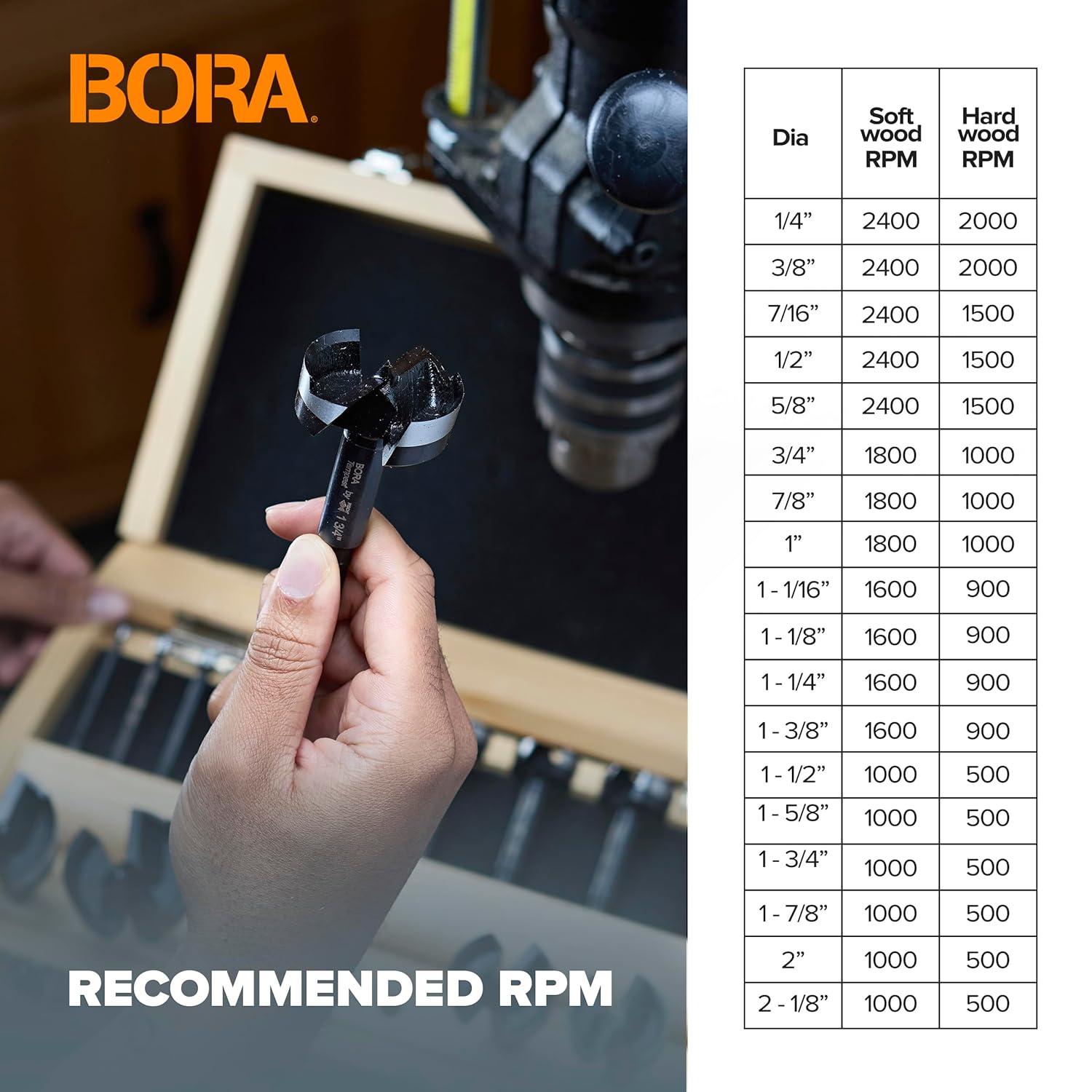 BORA Woodworking Tools 7-Piece Tempest Forstner Bit Set for Wood with Wooden Case – 1/4″ to 1″ Diameter Drill Bits – Precision Ground Cutting Edge for Power Tools & Drill Press BFB-009867(16 Pc Set)