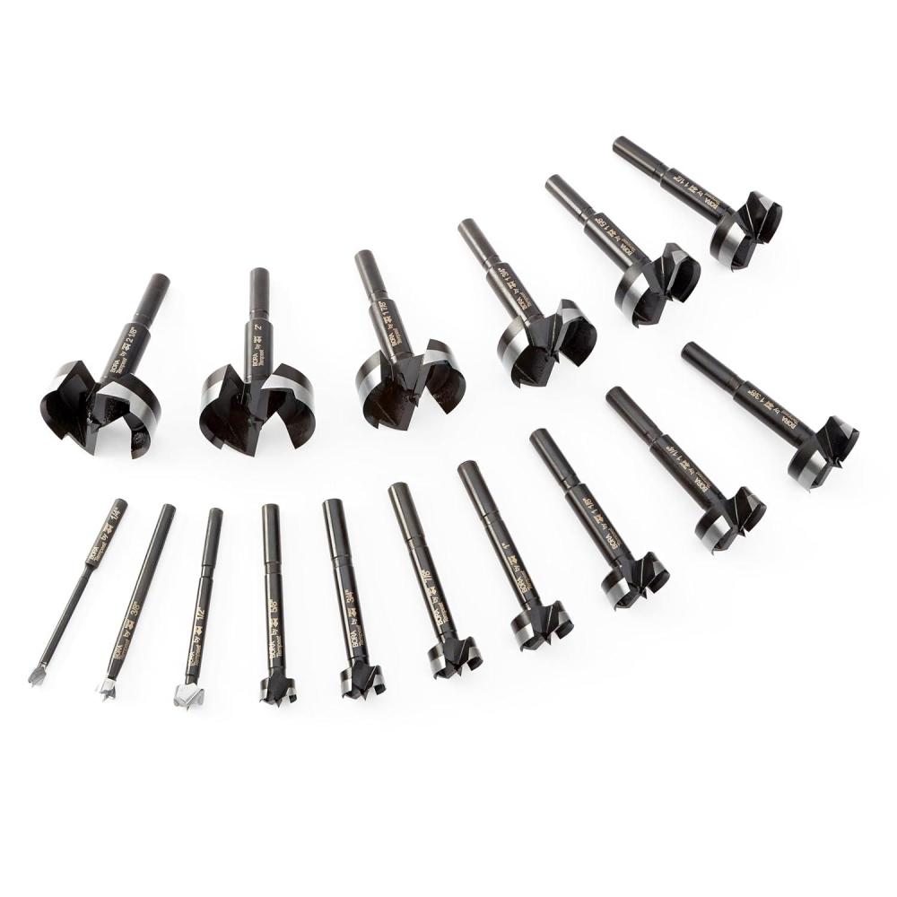 BORA Woodworking Tools 7-Piece Tempest Forstner Bit Set for Wood with Wooden Case - 1/4" to 1" Diameter Drill Bits - Precision Ground Cutting Edge for Power Tools & Drill Press BFB-009867(16 Pc Set)