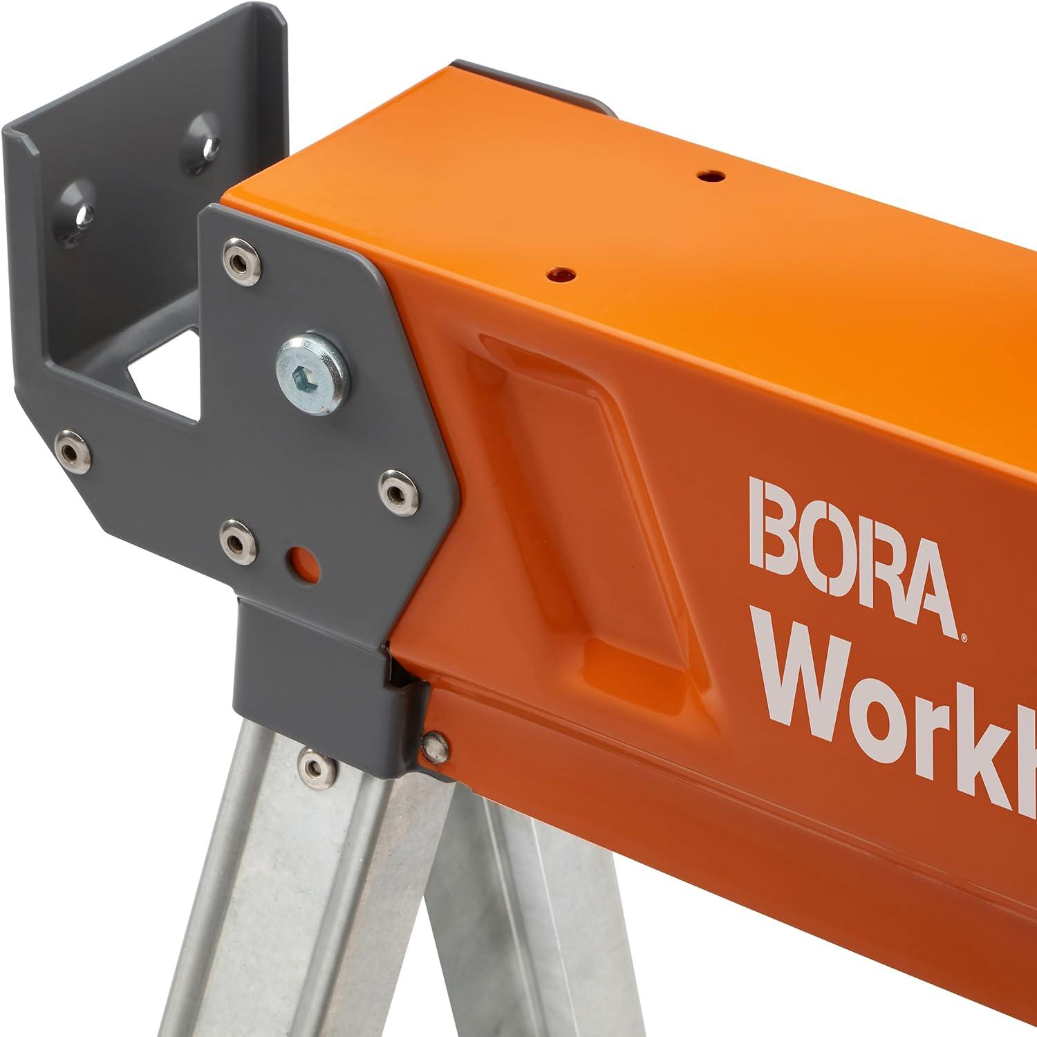 Compact and portable design, Durable steel leg latches creates a sturdy A frame Leg with no need to individually latch each leg. When your work is done, legs fold easily inside the Bora saw horse.
